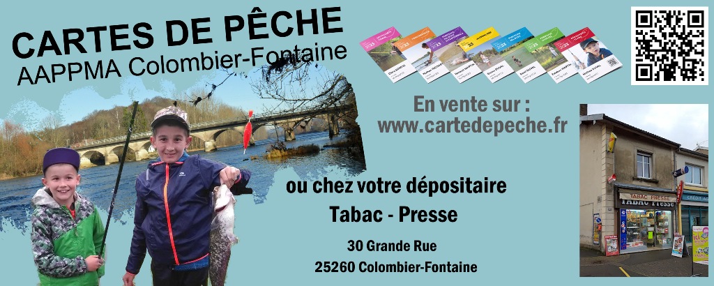 En 2025, environ 85 % des pêcheurs de notre AAPPMA ont pris leur carte de pêche par internet et 15 % chez notre dépositaire : Le Petit Casino - Tabac - Presse ; 38 Grande Rue Colombier-Fontaine.