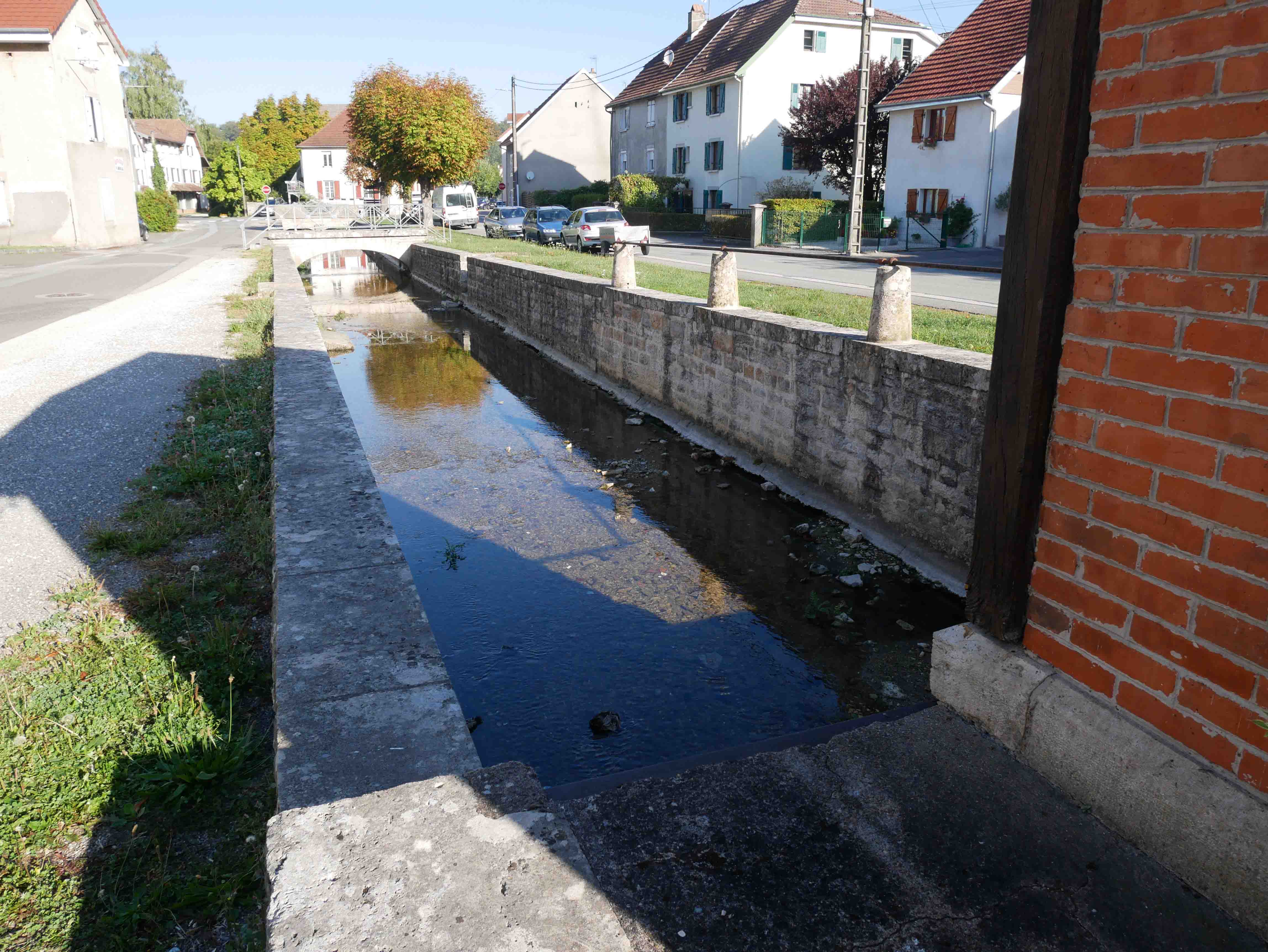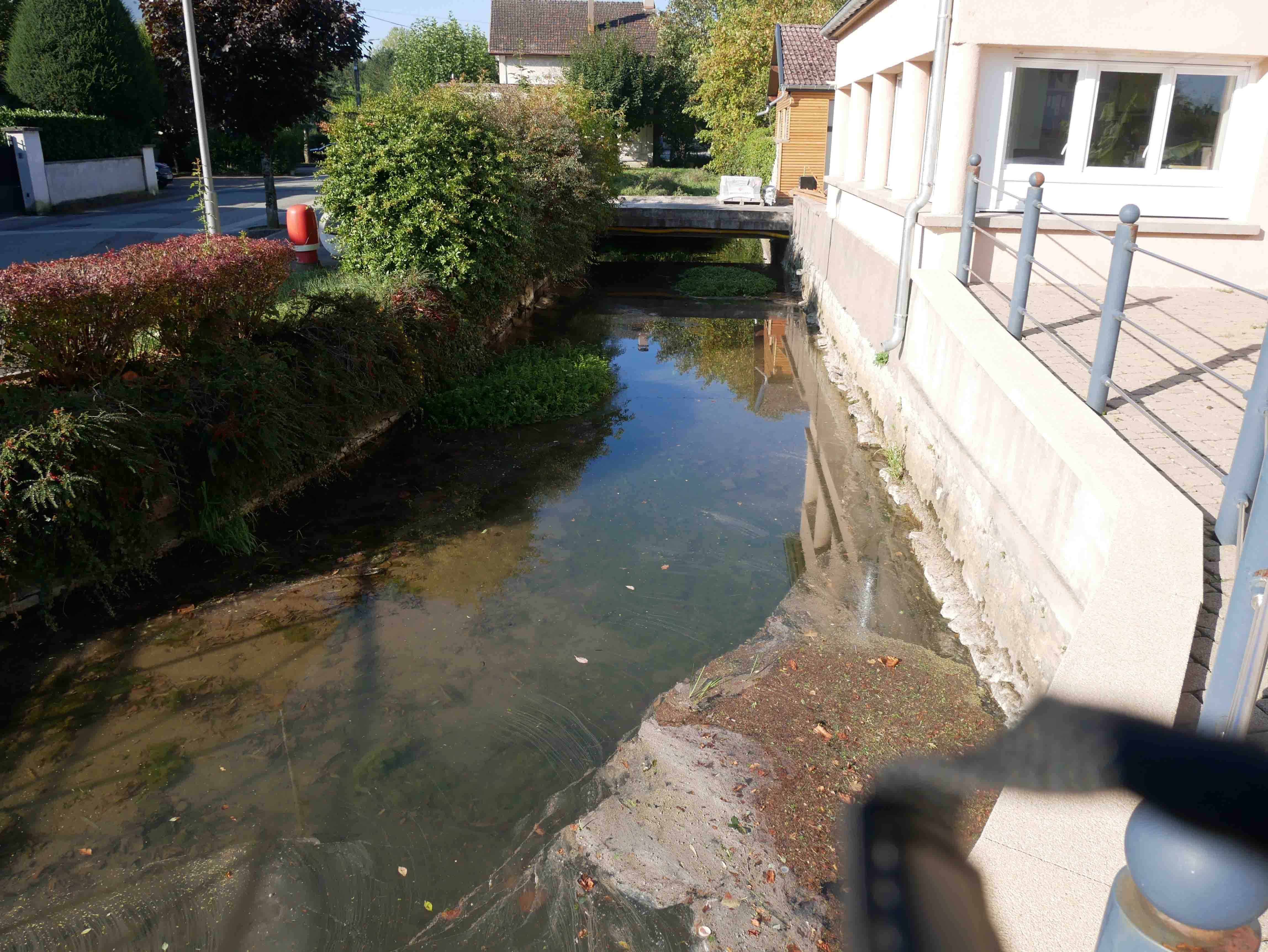 Ce ruisseau montre un potentiel piscicole important. Grâce à la qualité des substrats de ce même lit mineur (galets / graviers), à la fraîcheur et à la qualité acceptable des eaux du ruisseau associés à un classement en réserve piscicole, les densités de truites observées sont non négligeables. Elles pourraient toutefois être bien supérieures. En effet, le lit mineur du ruisseau est aujourd’hui dépourvu d’habitats d’intérêt à l’exception de quelques anfractuosités présentes au pied des perrés en pierre qui l’encadrent. Par ailleurs, les quelques herbiers aquatiques qui se développent lors de la période estivale sont systématiquement évacués par les services techniques de la Commune de Colombier Fontaine. Ces opérations sont menées pour limiter le développement parfois important de ces herbiers et réduire le risque de débordement (même si l’impact réel de ces derniers sur les écoulements semble limité). Ces développements de végétation sont à mettre en relation avec la sur-largeur importante du lit mineur du ruisseau qui induit une faible lame d’eau et de faibles vitesses lors des périodes d’étiage. Associé à un ombrage quasi-inexistant de certains secteurs, la végétation explose dès les premières chaleurs.
