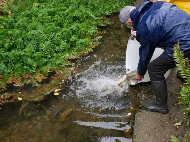 Pendant ce temps, les truites se prélassent dans leur nouveau lieu de villégiature