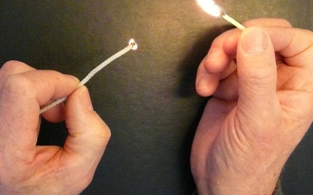Brûler légèrement l'extrémité de la tresse afin de former une petite boule qui servira à la bonne tenue du nœud. |